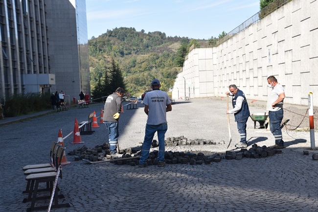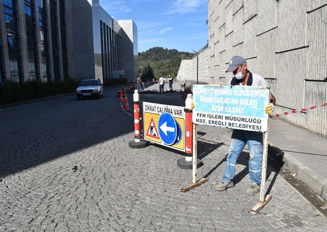 Kdz. Ereğli Belediyesi, Kdz. Ereğli Devlet Hastanesi girişi ile Acil Servis arasında kalan taş parke yolda tamirat çalışmalarına başladı.