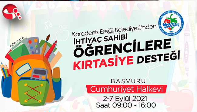 Kdz. Ereğli Belediyesi, 2021-2022 eğitim-öğretim dönemi öncesi ihtiyaç sahibi öğrencilere kırtasiye yardımında bulunacak. Başvurular, 2-7 Eylül tarihleri arasında merkez Cumhuriyet Halk Evi’nde alınacak.