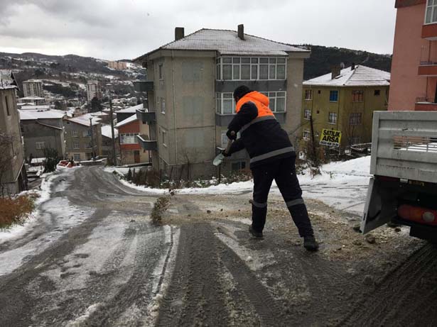 Sabah saatlerinden itibaren şehir merkezinde de etkisini artıran kar yağışına karşı Kdz. Ereğli Belediyesi Fen İşleri Müdürlüğü, Su ve Kanalizasyon, İtfaiye, Temizlik İşleri, Zabıta başta olmak üzere bütün birimler ana arterler, ara yollar ve yaya kaldırımlarında temizlik çalışmalarını sürdürüyor.