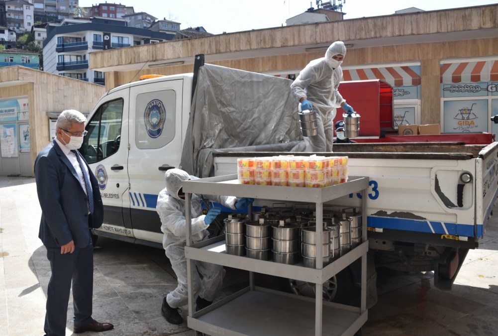 Belediyedeki personelimiz seferber olmuş durumda. Aşçılarımız, yardımcılarımız belli bir hijyen dahilinde büyük bir hazırlık yaptılar. Sefer taslarıyla birlikte arabalarla belirlediğimiz adreslere yemekleri götüreceğiz. Hiç kimse görmeyecek. Zabıta ekmeğini ve sefer taslarını verecek, ertesi gün de boşları alıp yenisini götürecek. Sefer tasları tespit edilen ailenin ihtiyaçlarına göre... 2 kişilik, 4 kişilik ve daha üzeri olanlar için ayrı sefer tasları var. Tespitler yapıldı, evlere buna göre dağıtım yapacağız. Yemekleri bol kepçe koyuyoruz ki çocuklar için öğlen yemeği de hazır olsun istiyoruz. Akşam da iftarda kendilerine göre ayarlasınlar istiyoruz.