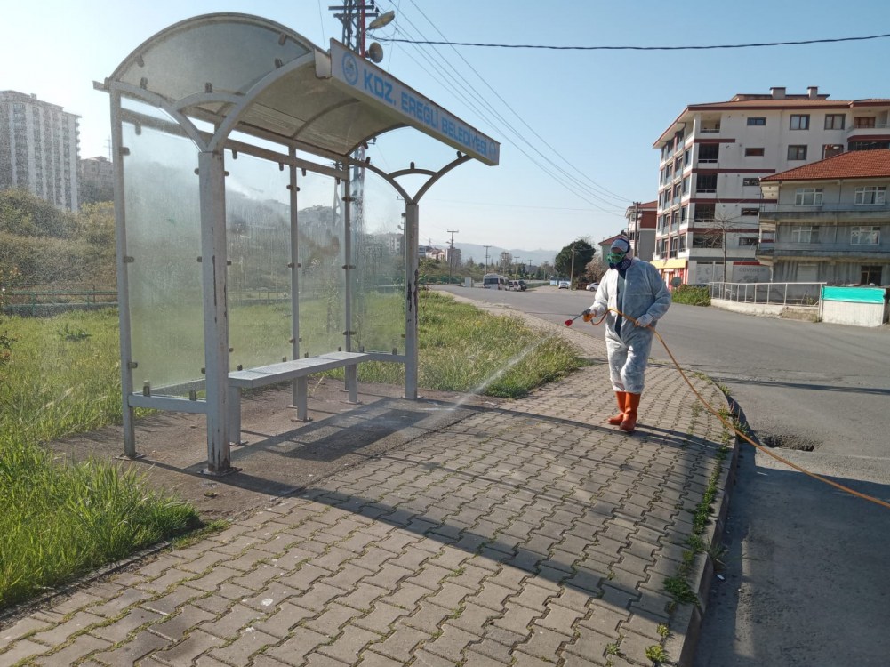 Hafta sonunda ikinci kez uygulanan sokağa çıkma yasağı nedeniyle caddeler, sokaklar sessizliğe bürünürken, Karadeniz Ereğli Belediyesi ekipleri çalışmalarını daha da yoğunlaştırdı. Yollar, caddeler köpük köpük yıkandı, dezenfekte çalışmaları devam etti.