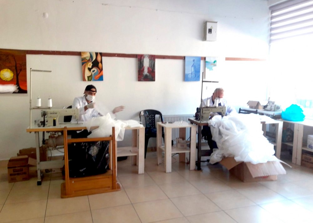 Cumhuriyet Halk Evleri’ndeki maske üretim atölyesinde gönüllülerle birlikte maske üretimi devam etti.