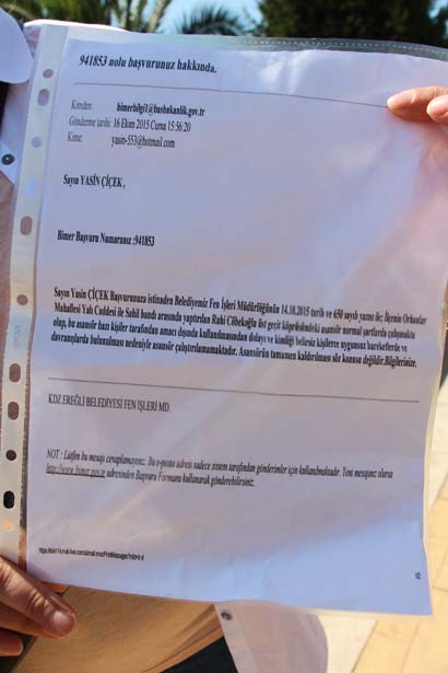 Bizim zonguldak belediyesi şikayetsiz bir iş yapmıyor..bende şikayet etmiştim alakasız seyler yazmıştılar...haklıyken haksız duruma düştüm...belediye başkanı babamın arkadaşı olduğu için bir daha şikayet etmeme izin vermedi babam...olayda bu şekilde unutuldu