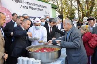 Karadeniz Ereğli Belediye Ekipleri tarafından hazırlanan aşurelerin dağıtımı öncesi Müftülük Murakkıbı Ramazan Duman aşureyi hazırlayan belediye ekiplerine ve yiyen vatandaşlara dua etti.