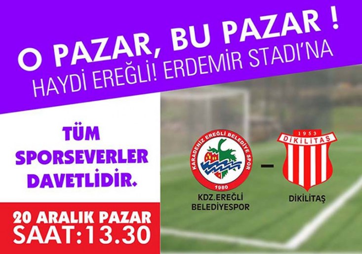 Bölgesel Amatör Futbol Ligi 8. grupta mücadele eden Ereğli Belediyespor, İstanbul Temsilcisi Dikilitaş'ı konuk edecek.