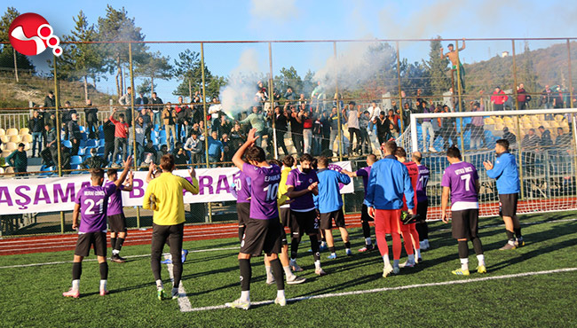 Maç sonu taraftarlar takımı tribüne çağırarak galibiyeti kutladı.