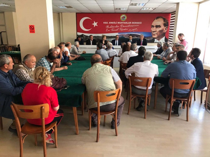 CHP Zonguldak Milletvekili,27.Dönem CHP Zonguldak Milletvekili 1.sıra adayı Ünal Demirtaş, 26.Dönem CHP Zonguldak Milletvekili Şerafettin Turpçu, CHP Zonguldak Milletvekili 4.sıra adayı Merve Kır, Kdz.Ereğli eski belediye başkanı Halil Posbıyık ve eski ilçe başkanı Yaşar Balcı ile Semih Özkök, Kdz.Ereğli CHP İlçe Örgütü,Kadın Kolları,Belediye meclis üyeleri, Kdz.Ereğli Muhtarlar Derneği ile Kdz. Ereğli Köy Mahalle Muhtarları Derneği'ni ziyaret etti. CHP'li Demirtaş,muhtarlarla yapılan sohbet toplantısında, Ereğli ve Zonguldak'ın sorunlarına dair soruları cevapladı.