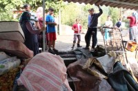 ev ve iş yerlerinde başlanan temizliğe mahalleli de yardım ediyor. Sel