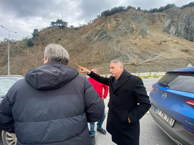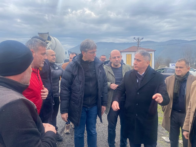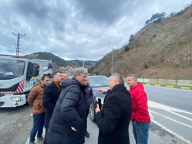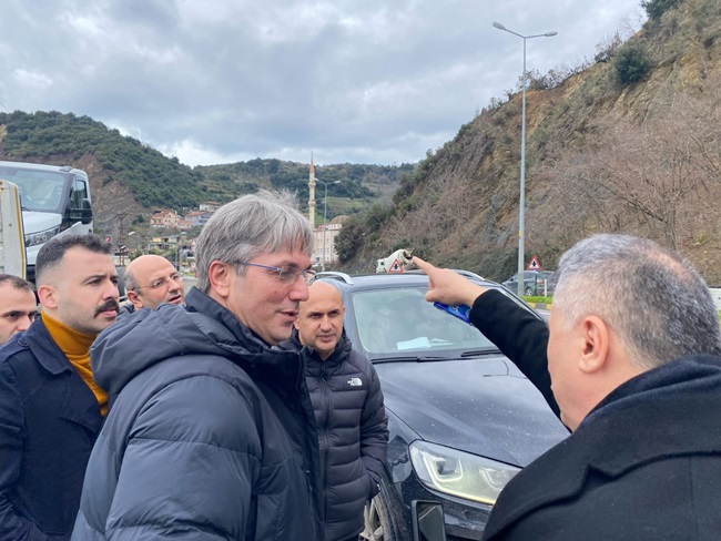 AK Parti Zonguldak Milletvekili Av. Saffet Bozkurt, AK Parti Kdz. Ereğli ilçe Başkanı Av. Muhammet Mücahit Andiç, Karayolları 15. Bölge Müdürü Alparslan Eşlik ve beraberindeki heyet ile birlikte Ereğli-Devrek Karayolu’nda devam eden çalışmaları yerinde inceleyerek bölge muhtarlarının taleplerini dinledi. Karayolları yetkililerinden Ereğli-Devrek arasında devam eden yol çalışmaları hakkında bilgiler alan Bozkurt, hiçbir aksaklığa meydan vermeden yol yapımının hızlı bir şekilde tamamlanmasını istedi. Bozkurt ve beraberindeki heyet daha sonra Soğanlıyörük Köyü Delihakkı mevkisinde incelemelerde bulunarak, sel ve su baskınlarından dolayı yaşanan mağduriyetlerin önüne geçilmesi için menfez yapımı başta olmak üzere alınması gereken diğer tedbirleri görüştü. Karayolları yetkilileri ile daha sonra Kepez yolunda da incelemelerde bulunan Millet vekili Av. Saffet Bozkurt, yol güzergahında sıkça yaşanan ölümlü, yaralamalı ve maddi hasarlı kazaların önüne geçilmesi ve yol güzergahında trafiğin sıkışmasını önleyecek çalışmaların ivedilikle planlanıp çözüme kavuşturulmasını istedi. Milletvekili Bozkurt Kepez’in ardından Göktepe Mahallesi plajlar mevkisinde yaşanan heyelanlardan dolayı tehlike oluşan bölgede gerekli önlemlerin alınması için yapılacak çalışmaları değerlendirdi. Bozkurt son olarak karayolları yetkilileri ve ise AK Parti Alaplı İlçe Başkanı Av. Altan Güngör ve beraberindekilerle Alaplı Sabırlı Kavşağı ve Alaplı-Yığılca yolunu inceleyerek, çalışmaların hızlandırılmasını istedi. Gerek ilçe başkanlığı ve gerekse milletvekili seçildikten sonra karayollarında devam eden çalışmaların hızlandırılması, mevcut yollarda alınması gereken tedbirler ve yapılması gereken çalışmaları yakından takip ettiğini belirten AK Parti Zonguldak Milletvekili Av. Saffet Bozkurt, bölge halkının daha konforlu ve güvenli yollara kavuşması için gece gündüz çalıştıklarını söyledi.