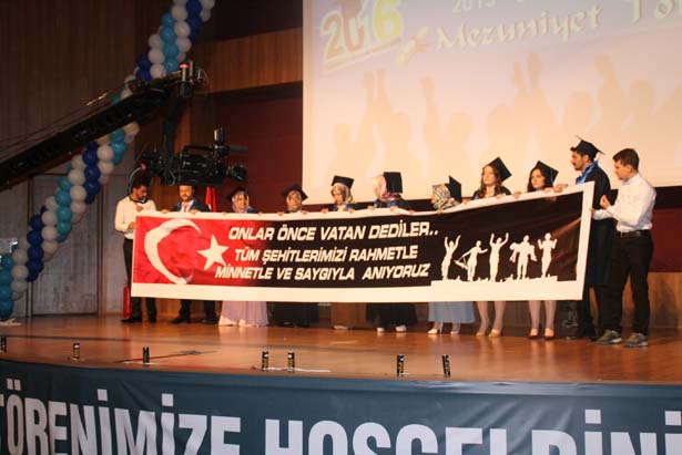 Bülent Ecevit Üniversitesi (BEÜ)Ereğli Eğitim Fakültesi'nce 2015-1016 Eğitim Öğretim Dönemi mezuniyet töreni gerçekleştirildi. Öğrenciler törene şehitlere rahmet dileyen pankartla çıktı. BEÜ Rektörü Özer, Ereğli Kampüsü'nde yaşanan gelişmelere dikkat çekti.