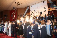 İki bölüm halinde gerçekleştirilen törende öğrenciler daha sonra diplomalarını kendilerini yetiştiren öğretim üyeleri ve öğretim görevlilerinin elinden aldı.