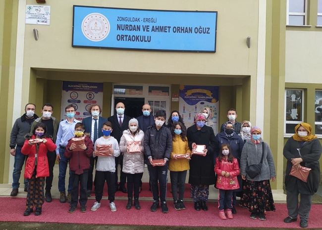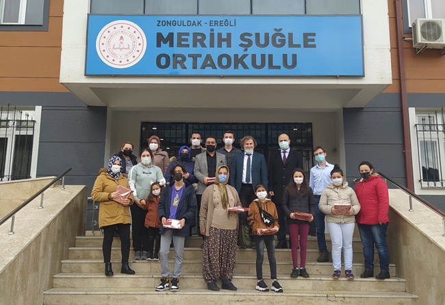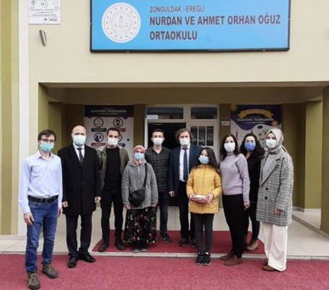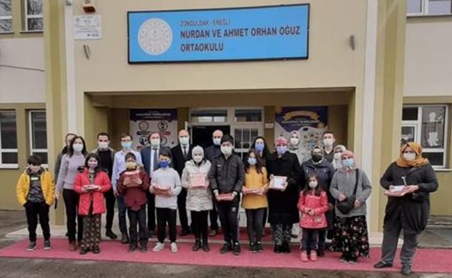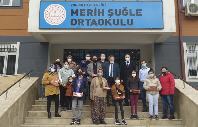 Ereğli Eğitim Fakültesi İlköğretim Matematik Öğretmenliği 4. sınıf öğrencileri, Topluma Hizmet Uygulamaları dersi kapsamında, Doç. Dr. Timur KOPARAN danışmanlığında yürüttükleri proje çerçevesinde salgın öncesi düzenledikleri kermes ve hayırseverlerin katkıları ile temin ettikleri 21 tableti uzaktan eğitime katılamayan ihtiyaç sahibi öğrencilere teslim ettiler.