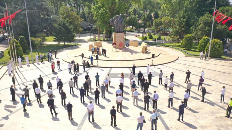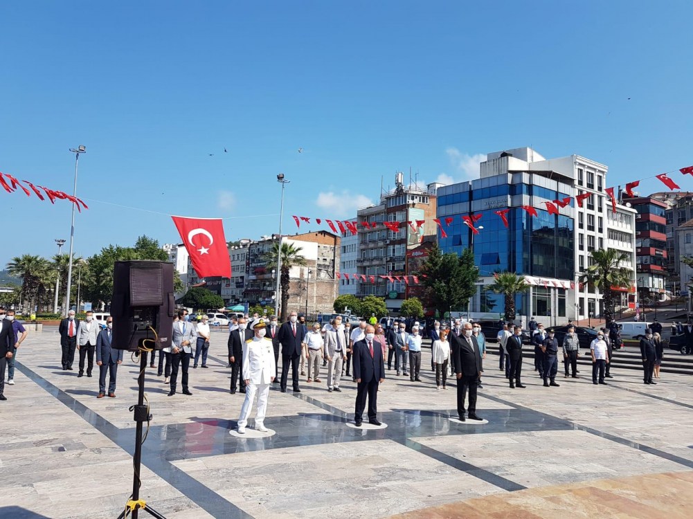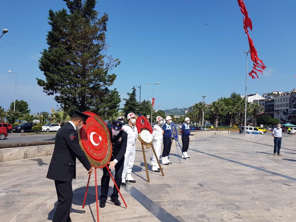 Zonguldak'ın Ereğli ilçesinde Karadeniz Ereğli'nin düşman işgalinden kurtuluşunun 100. yılı nedeniyle Atatürk Anıtı önünde Karadeniz Ereğpli Kaymakamlığı ve Karadeniz Ereğli Belediyesinin katkılarıyla çelenk sunma töreni gerçekleştirildi.