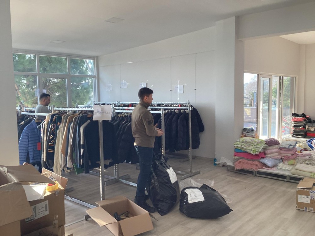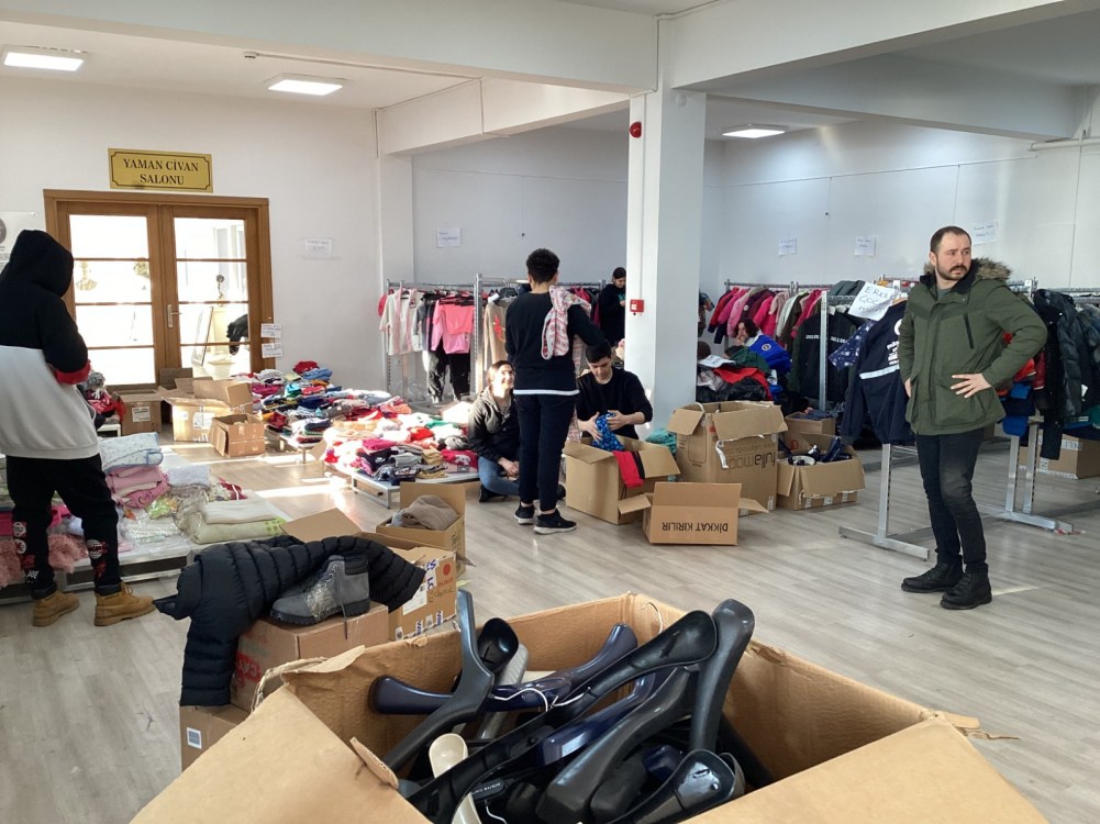 Depremzedeleri evlere yerleştiren ayrı grup var. Bir çok vatandaş evlerini veriyor. Eşyalı evlerini verenler de var. Kıyafet eksiği varsa buraya gelip çocuklar için çocuk reyonu var, bebek reyonu var. Ayakkabı reyonu var, herkes ölçülerine göre burada giyimlerini yapıyorlar. Hatta bu büyük salon yetmediği için yan o salonu da açıyoruz. Sürekli giysi, ayakkabı ve bot geliyor. Ereğlili hayırseverler gönderiyorlar. Biz de salonu büyütmeye çalışıyoruz. Çünkü talep çok fazla. Ayrıca tırlarla da deprem bölgesinde tespit edilen yerlere, özelikle köylere buradan yardım malzemlerini gönderiyoruz.