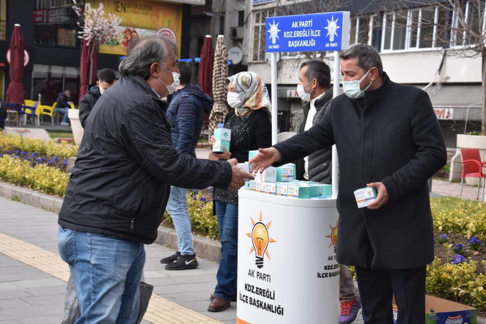 AK Parti Kdz. Ereğli İlçe Teşkilatı bugün, ilçe merkezinde vatandaşlara kandil simidi ikram ederek Miraç Kandilini kutladı.