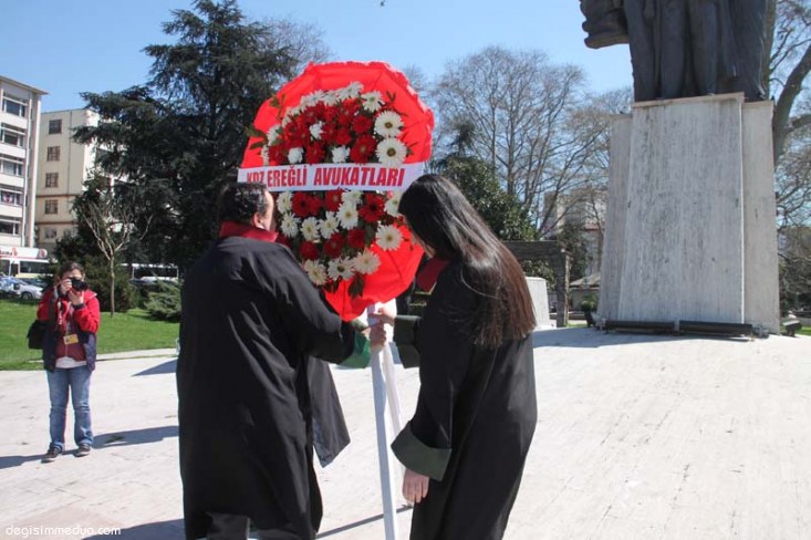 Zonguldak'ın Ereğli ilçesinde avukatlar 'Avukatlar günü' dolayısıyla anıta çelenk koydu.