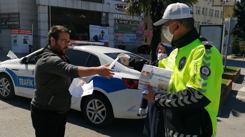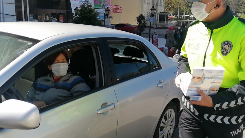 Zonguldak’ın Ereğli ilçesinde polis ekipleri maske dağıttı. Kent genelinde polis ekipleri vatandaş ve sürücülere maske dağıtarak, uyarılarda bulundu.