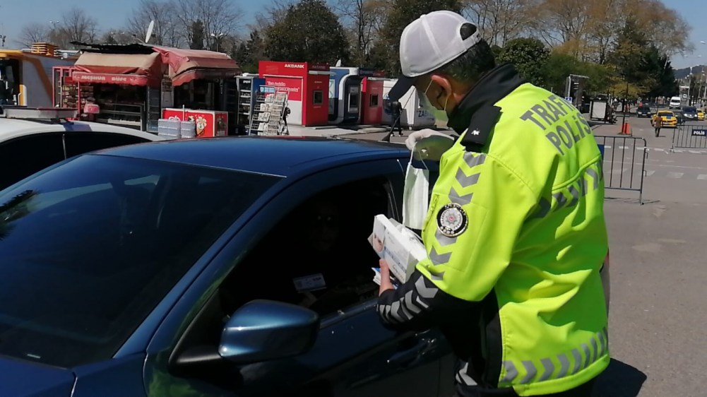 Maske dağıtan polis ekipleri, maske kullanımı ve önemi hakkında bilgi vererek vatandaşları evde kalmaları konusunda uyardı.