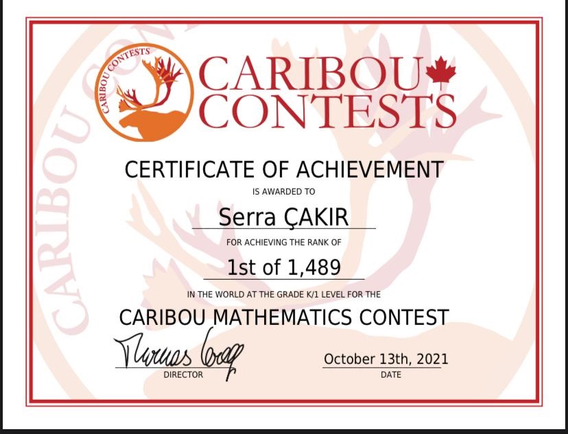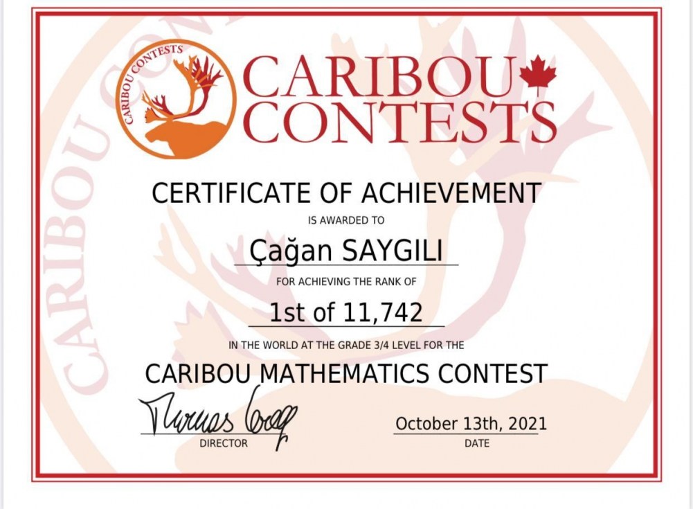 Dünya çapında düzenlenen altı aşamalı Caribou Contest Matematik Yarışmasının 1. aşamasında Ereğli İlkokulu 4.sınıf öğrencilerinden Çağan SAYGILI ve 1. Sınıf öğrencilerinden Serra ÇAKIR katılan tüm ülke öğrencileri içerisinde tüm sorulara doğru cevap vererek kendi kategorilerinde 1. oldular.