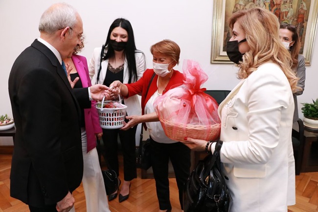 Ereğli Kadın Gücü heyeti, CHP Genel Başkanı Kemal Kılıçdaroğlu’na, Kooperatif çatısı altında güç birliği oluşturan kadınların ürettiği çeşitli ürünler ile Sevgi, Barış, Dostluk kenti Kdz. Ereğli’ye özgü çeşitli hediyeler takdim etti.