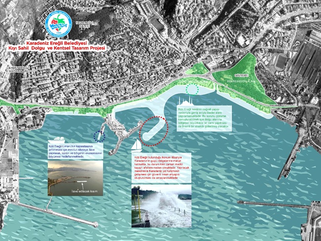 Kdz. Ereğli Belediye Başkanı Halil Posbıyık’ın kamuoyunda heyecan uyandıran kentin yeni vizyon projesi ‘Kıyı Sahil ve Kentsel Tasarım Projesi’nin ayrıntıları belli oldu. İçerisinde yat limanı, cami, bisiklet ve yaya yürüyüş yolları, deniz seyir terasları, kitap okuma yerleri, kafeterya ve lokanta gibi günübirlik tesisler, amatör balık tutma yerleri, çekek koruma alanı, fener ve sahil trafiğini rahatlatacak park yerleri bulunan projede deniz dolgusu ile Ereğli’nin sahili yeniden kurgulanıyor. Kıyı alanı denize doğru dolgu yapılarak 125 bin metrekare genişletilecek. Toplam alan 280 bin metrekare olacak. Ereğli bu proje ile Karadeniz’in cazibe merkezi haline gelecek.