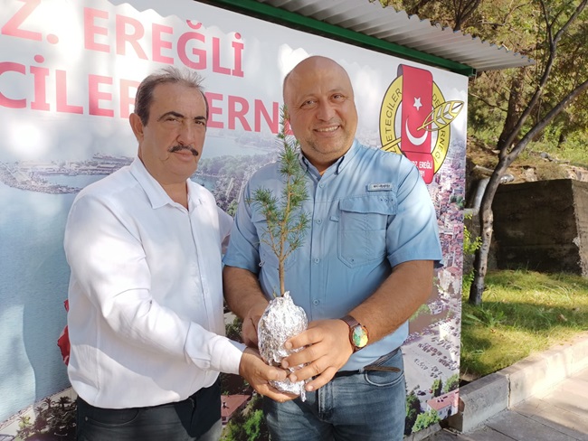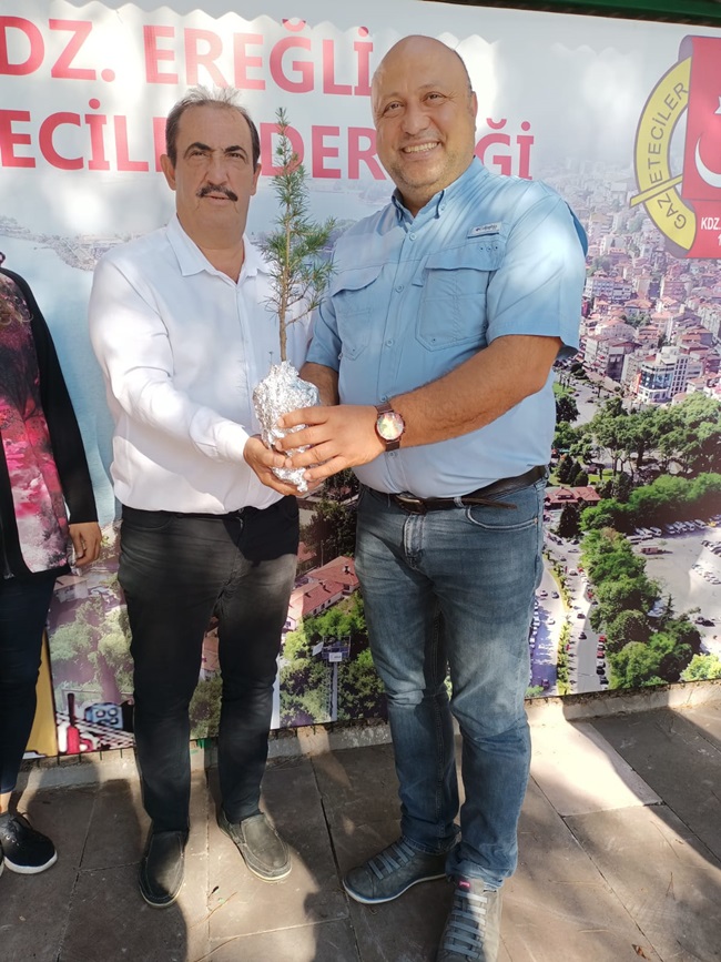 Kdz.Ereğli Kent Konseyi Başkanı Osman Yavuz, geçtiğimiz aylarda yaşanan orman yangınları dolayısıyla başlatılan fidan kampanyasına destek amacıyla, ziyarette günün anısına Ereğli Gazeteciler Derneği Başkanı Şafak EreL’e çam fidanı hediye etti.