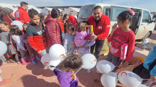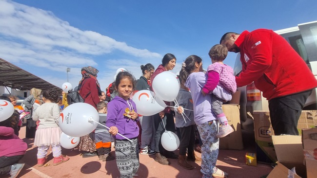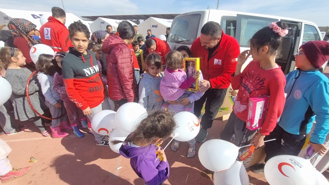Türk Kızılayı Kdz. Ereğli Şube Başkanı Kürşat Yağız önceki gün bir tır dolusu malzeme ile Adıyaman’a giderek çadır kentlerde kalan vatandaşlara yardımları ulaştırdı. Başkan Yağız ve beraberinde ki gönüllüler çadır kentlerde kalan yüzlerce çocuğa oyuncak ve balon dağıtarak yüzlerini güldürdü.