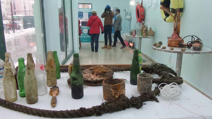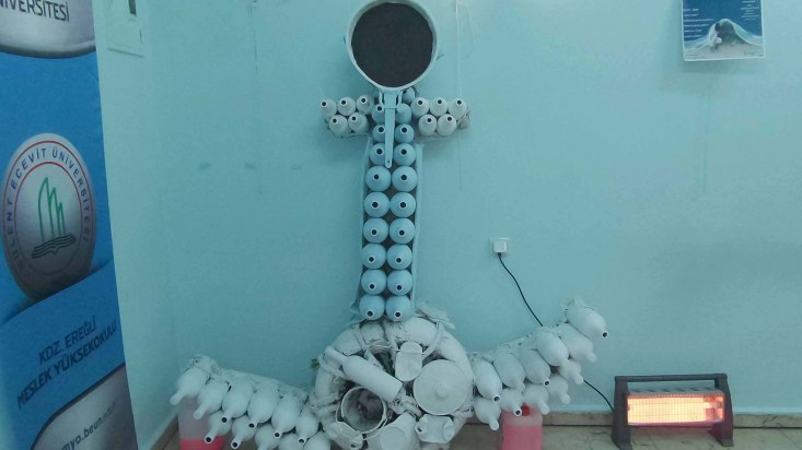 bölümü öğrencileri, denizden çıkarttıkları çeşitli atıkları sergiledi. Deniz