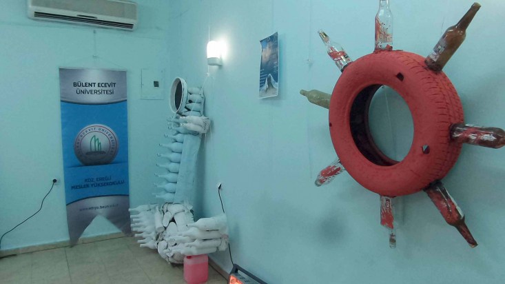 Zonguldak'ın Ereğli ilçesinde, Bülent Ecevit Üniversitesi Karadeniz Ereğli Meslek Yüksekokulu Deniz ve Liman İşletmeciliği bölümü öğrencileri, denizden çıkarttıkları çeşitli atıkları sergiledi. Deniz altındaki kirlilik de su altı kamerası ile görüntülendi.