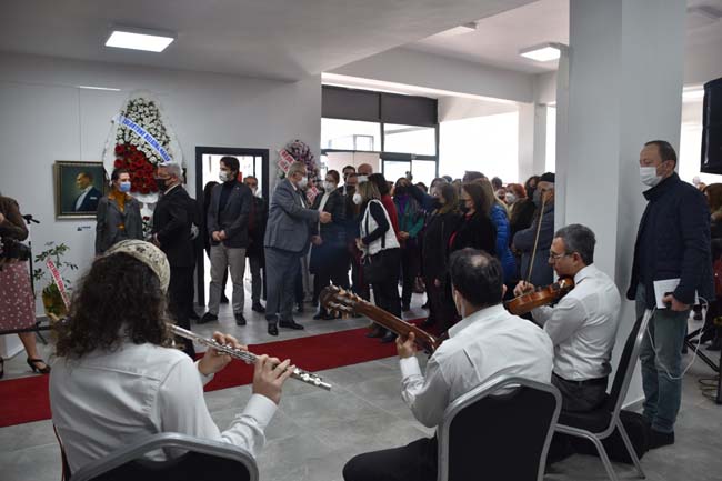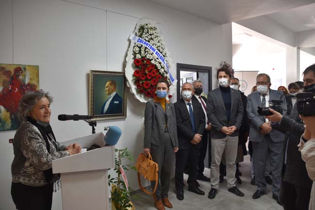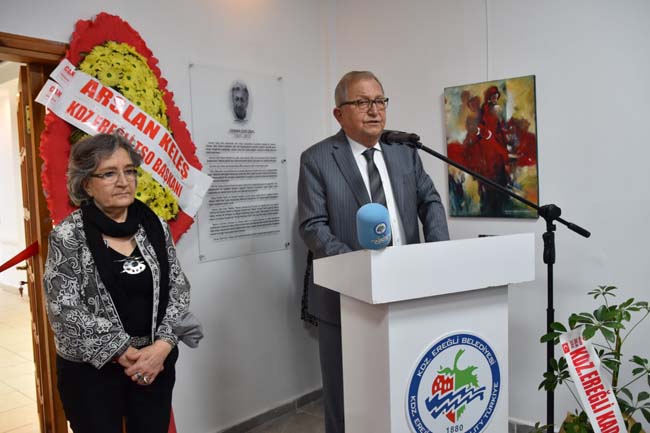 “Bugün çok değerli misafirlerimiz var. Birleşmiş Ressamlar ve Heykeltıraşlar Derneği (BRHD) sanatçılarını Ereğli’de ağırlamaktan mutluluk duyuyoruz. Bu eserlerin Ereğli’ye gelmesi kolay olmuyor, güvenlikleri sağlanıyor ama bütün meşakkatlere katlanarak buraya getirdik çünkü AKM’de yeniden tadilat yaptık. Açılışa Osman abinin ve Vedat abinin üyesi olduğu Birleşmiş Ressamlar ve Heykeltıraşlar Derneği ile açılışı gerçekleştirmek istedik. 1994’te ilk Belediye Başkanı olduğumda buranın açılışını nur içinde yatsın büyük sanatçı Gülriz Sururi ile yaptık. Rahmetlinin hiç unutmadığım sözü, “Denize sıfır bir alanda hem sinema salonu, hem sergi salonunun böylesine güzel bir yerde olmasından çok mutlu oldum’ dedi. Burası bir başka olaya da tanıklık etti. Türkiye ile Yunanistan arasında sürekli siyasal yönden kavga olduğu, politik gerginliklerin olduğu dönemde Türk-Yunan Barış Toplantısını burada yaptık ve 1995 yılında Yunanistan’ın Hydra kenti ile kardeş kent ilan edildik. Abdi İpekçi Barış Ödülü’ne layık görüldük. Bu salon çok değerli insanları bir araya getirdi. Sergi salonlarımız bugün itibariyle faaliyete geçiyor, ancak çok amaçlı salon henüz bitmedi. Sahnesinde Devlet Operası’nın da konserler verebilmesi için çalışma yürütüyoruz. Ses ve ışık düzeni tamamen yeniden yapılıyor. Yakın zamanda ihalesini yapacağız.