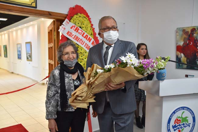 “Anılarla dolu bir programda birlikte olmanın mutluluğunu yaşıyoruz. Osman Zeki Oral bugün bizi bir araya topladı. Bu sanatın gücünü ortaya koyuyor. Bütün zorluklara rağmen, pandemiye rağmen bir aradayız. Gözlerimizden okuduk güzelliklerimizi. 103 sanatçı, 105 eserle Ankara’dan buraya, bu güzel salonu doldurduğumuz için çok mutluyum. 29 Ekim’de Zafer Pasajı’nda 169 üyemizle birlikte anılarla dolu bir sergi açtık. Zafer çarşısı dediğimiz zaman herkesin aklına Osman Zeki Oral gelirdi. Ne güzel bir insanmış ki güzellikler bırakarak gitmiş. Ne kadar çok insana dokunmuş. Biz bu güzel insanların sayesinde buradayız. Vedat Can’ı da saygı ve minnetle anıyoruz. Kdz. Ereğli Belediye Başkanı Sayın Halil Posbıyık’a sanata verdiği değer için ayrıca teşekkür ediyoruz.”