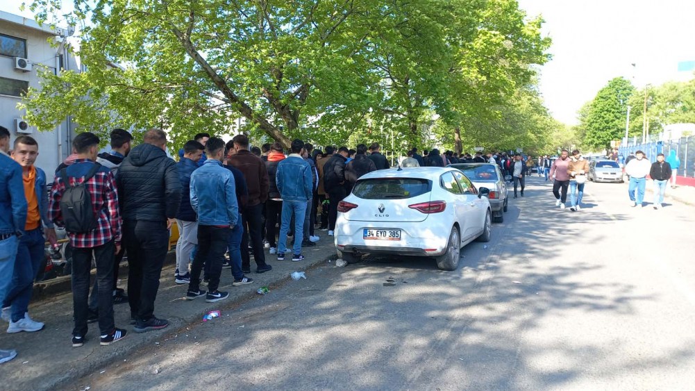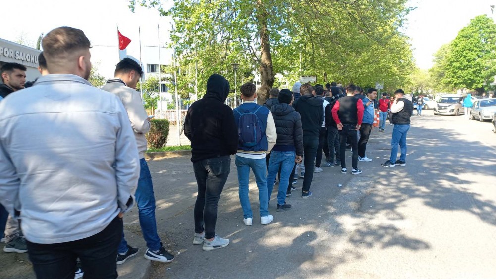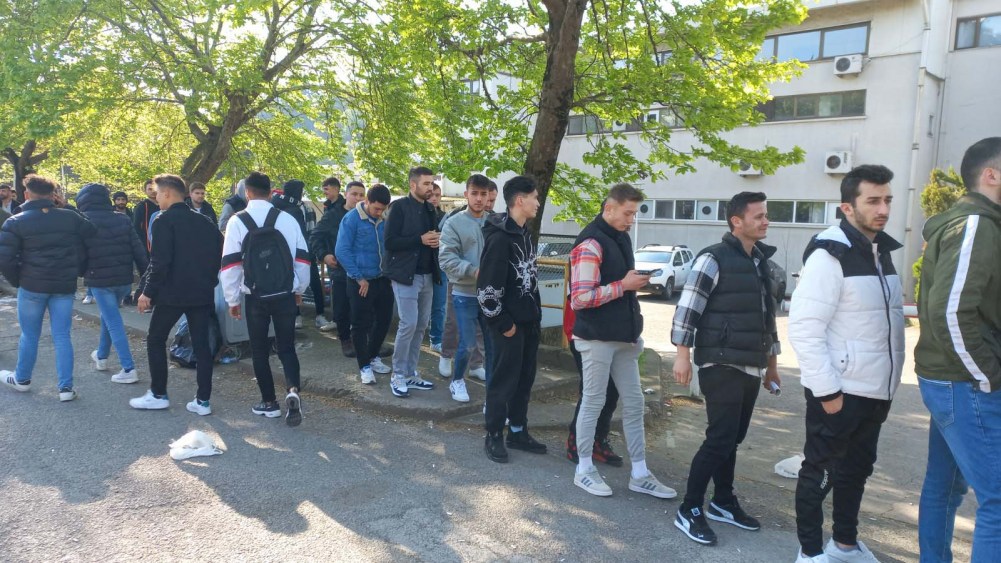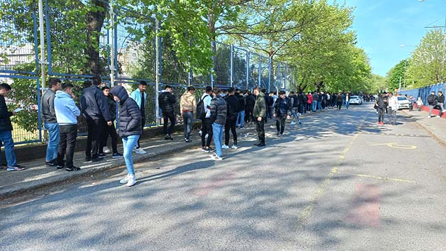 Yaşları 18-25 arasındaki gençlerin yan ısıra bazılarının aile ve yakınlarının da kuyrukta beklediği görüldü.