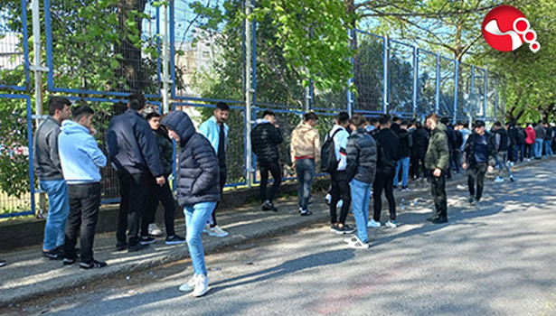 Bu arada, salon içinde oluşturulan stant için spor salonu alanına belirli sayıda alınan gençler, ilgili evraklarını doldurduktan sonra bölgeden ayrıldı.