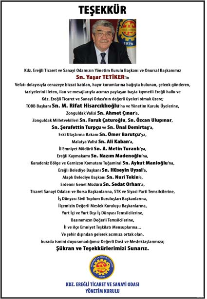 Ereğli TSO Yönetimi Teşekkür Etti...