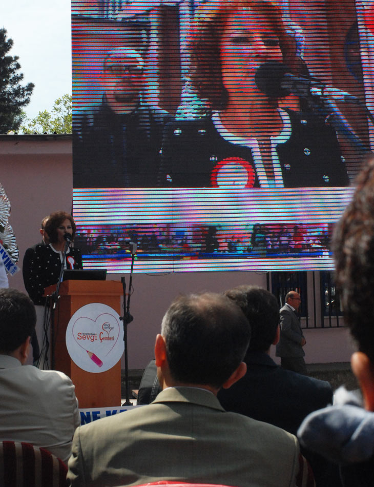 Kışla Mahmut Likoğlu İlköğretim Okulunda düzenlenen törende, telekonferans sistemiyle aynı ayrı 6 sınıf; Ereğli Belediye Başkanı Halil Posbıyık, Karadeniz Bölge ve Garnizon Komutanı Yalçın Enç, Milli Eğitim İl Müdürü Turgut Özbek, İlçe Milli Eğitimi Müdürü Mehmet Necati Kılıç, Sevgi Çemberi Kadın Meclisi Başkanı Neriman Posbıyık ve İşdamı ETSO Başkan adayı Arslan Keleş'in kestikleri kurdele ile hizmete açıldı.
