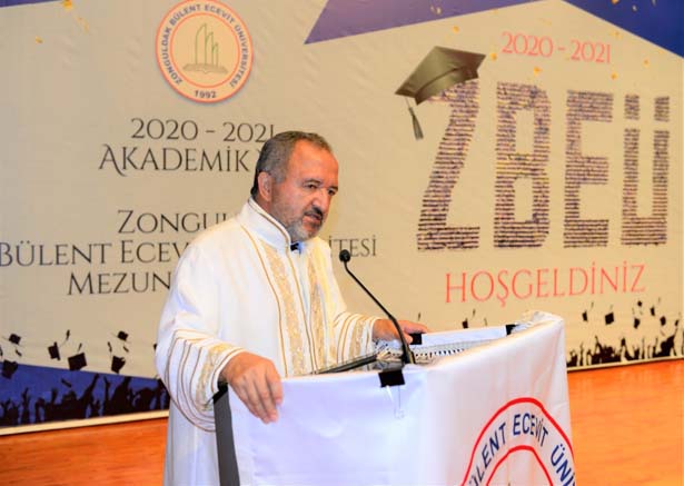 Törende konuşma yapan Bülent Ecevit Üniversitesi Rektörü Prof. Dr. Mustafa Çufalı konuşmasında pandemiden ötürü öğrencilerin ve eğitimcilerin zorlu bir süreçten geçtiğini belirtti. Pandeminin zorluklarının yanında son zamanlarda yaşanan sel ve yangınlardan ötürü üzüntüsünü ifade eden Rektör Çufalı, hayatlarını kaybeden vatandaşlara rahmet ve ailelerine sabır dileyerek mezun olan öğrencilere başarılar diledi.