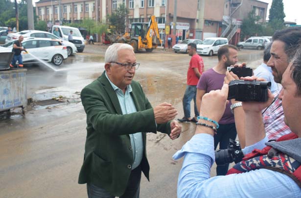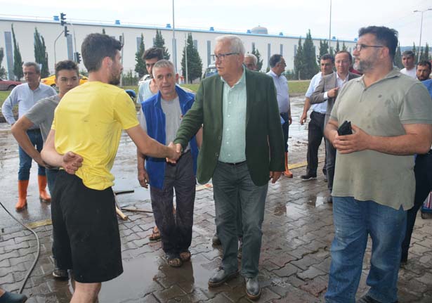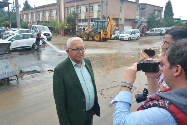"Sabahın erken saatlerinde alarm verdik, bütün ekiplerimiz alana dağıldı. Özellikle Kavaklık bölgesi Kabasakal deresinde Zonguldak tarafından İmam Hatip okuluna kadar ıslah çalışmaları yapılmıştı. Ama İmam Hatip okulundan benzin istasyonuna kadarki bölümde, duvar yükseltmeleri taban betonu DSİ tarafından yapılmamıştı. DSİ’yi getirdik, sağ olsunlar geldiler. Projelerinin yapılmak üzere olduğunu ve hızlandıracaklarını söylediler. Ayrıca Kabasakal’a kenarlardan gelen kuru dereleri de projeye dahil ettiler. Sabah Kışla Sanayi Sitesi'ne geldiğimizde durum felaketti. Ufak tefek hasarlarla atlattık. AFAD ekipleri, Devlet Su İşleri ekipleri burada. Ekiplerimiz sabaha kadar çalışacaklar ve bu bölgede selin hiçbir izini bırakmayacağız ama bazı mağdur olan arkadaşlarımız var. İşyerlerine ve evlere su girdi."