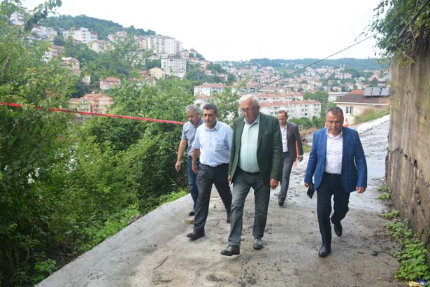 Başkan Posbıyık, başkan yardımcıları ve ilgili daire müdürleriyle birlikte heyelanların oluştuğu bölgeleri gezdi, sel baskınında zarar gören Kışla Sanayi Sitesi esnafına geçmiş olsun dileklerini iletti.