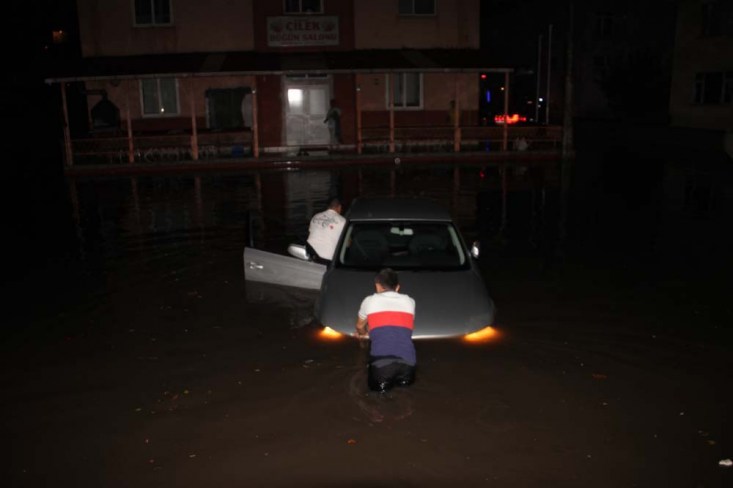 Sağanak yağış sonrasında tıkanan rögarlar ilçeyi gölete çevirdi. Su içerisinden geçmekte zorlanan araçlardan bazıları arızalanırken, belediye görevlileri ise tıkanan rögarları sopa ve demirlerle açmaya çalıştı. Çevre yolu Çetin Apatay bulvarı üzerinde devrilen büyük ağaç ise yolun trafiğe kapanmasına neden oldu. Uzun kuyrukların oluştuğu yol belediye itfaiye ekiplerinin yaptığı çalışma sonrasında yaklaşık 1 saat sonra trafiğe açılabildi. Sakindere sokak üzerinde devrilen bir ağaç ise otomobile zarar verdi.