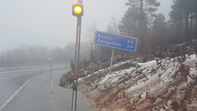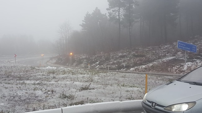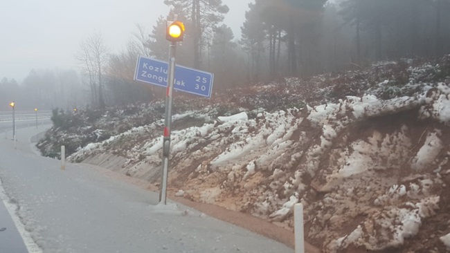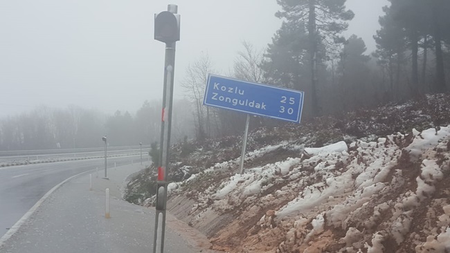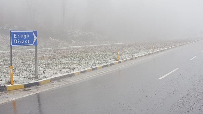 Meteoroloji Genel Müdürlüğü'nün uyarılarının ardından Zonguldak Ereğli kara yolunun yüksek kesimlerine mevsimin ilk karı düştü.