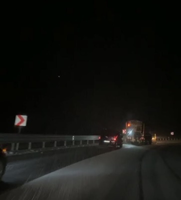 Karayolları ekiplerinin kar küreme çalışmasına başladığı güzergahta sürücülerin dikkatli ve tedbirli olması istendi.