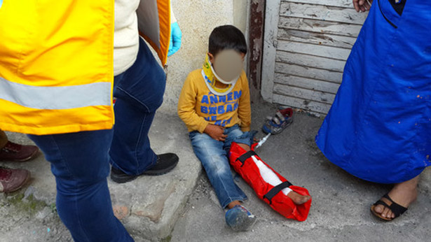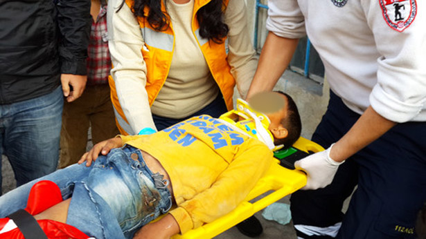 için olay yerine çağırılan sağlık ekipleri, yaralı çocuğa ilk müdahaleyi