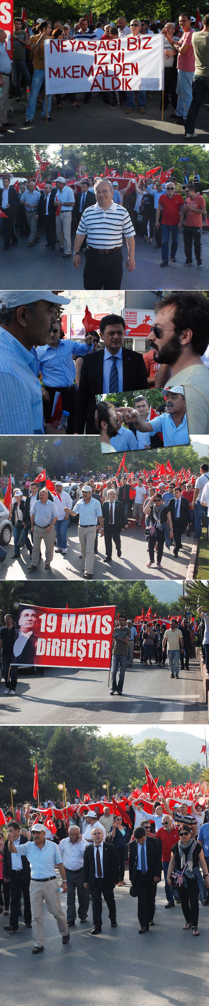 Bozhane mevkisinde (Çınaraltı) toplanmaya başlayan kalabalık, 17.30'a yolu kapatarak sahil güzergahından Anıt önüne kadar yürüdü. Ereğli Emniyetine bağlı polis amirleri, yürüyüşte başı çeken CHP Ereğli İlçe Başkanı Hayrettin Kartal'a sözlü ikazda bulunarak, yapılan yürüyüşün araç yolunu kapanmadan yapılması istendi. İkazlara uymayan Cumhuriyetçiler; kendilerine, ilgili kanunlarca yapılacak işleme razı olup yürüyüşlerine devam etti.