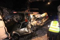 Kazada Erkan Ülkü'nün kullandığı ve hurdaya dönen dönen otomobil, çekici ile