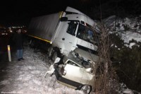 Zonguldak'ın Ereğli ilçesinde buzlanan yolda kayan 3 araç birbirine girdi. Kamyonun sürüklediği otomobil, kamyon ile istinat duvarı arasında sıkıştı. Kazada yaralanan 5 kişi ambulanslarla Ereğli Devlet Hastanesi'ne kaldırıldı.