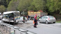 Kaza sebebiyle trafik tek şeritten kontrollü olarak verildi.