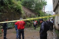 Diğer yandan aynı mahallede meydana gelen heyelan sonrasında çöken istinat