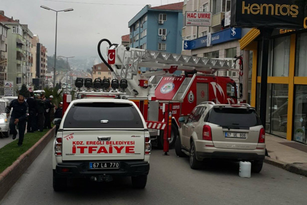 İddiaya göre , Kdz.Ereğli Belediyesinde 4 aylık sözleşmeli işçi olarak giren ve bugün itibari ile sözleşmesi sona eren S. E. isimli vatandaş, işsiz kalmasının verdiği moral bozukluğu ile temizlik işini yaptığı ikinci işi olan iş merkezinin çatısına çıktı. Ayaklarını boşluğa bırakan ve işsiz adamın binadan atlayabileceği ihtimali göz önünde bulundurularak 112 sağlık ve itfaiye ekiplerine haber verildi. Olay yerine gelen itfaiye ekipleri hava yatağını kurdu. Bölünmüş yolda Uğur Mumcu Caddesi ile Devrek Yolayrımı güzergahı, araç trafiğine kapatıldı. Bu sırada, toplanan vatandaşlardan bazılarının cep telefonları ile olayı kaydettiği görüldü.
