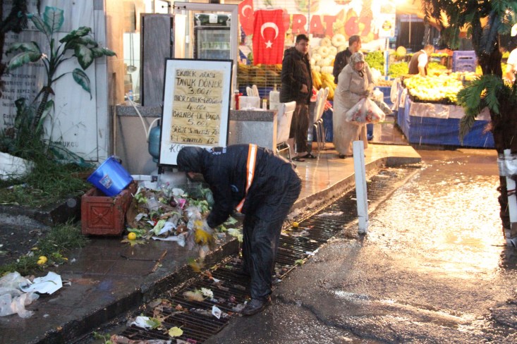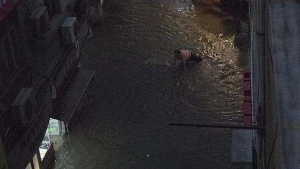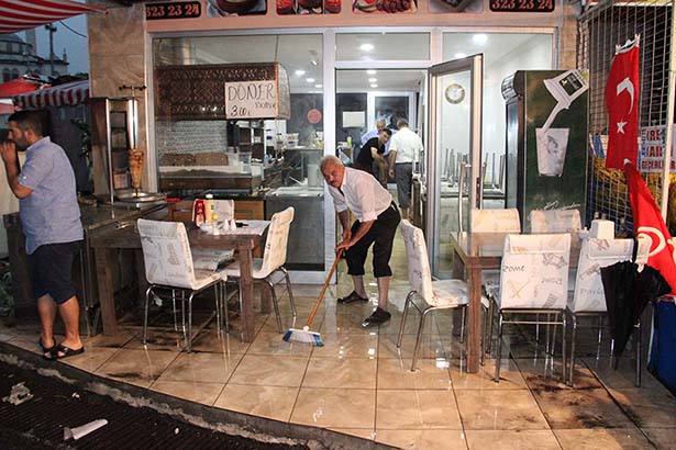 rögarları temizlemeye çalıştı. Taşan rögarlardan akan sular, birçok işyerine
