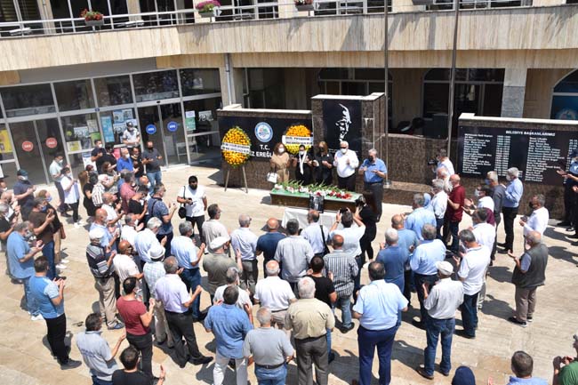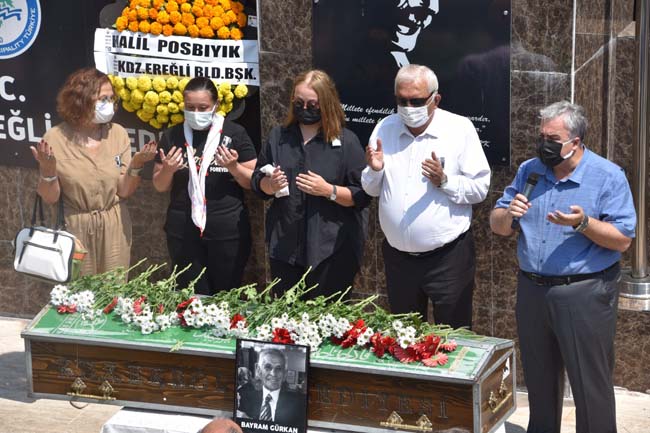 Tedavi gördüğü hastanede hayatını kaybeden CHP Eski İlçe Başkanı ve Kdz. Ereğli Belediyesi Eski Meclis Üyesi Bayram Gürkan için belediye binası önünde tören düzenlendi. Başkan Halil Posbıyık, Bayram Gürkan’ın beyefendi ve saygın kişiliğiyle Ereğli’de iz bıraktığını belirterek, “1973 - 1980 yıllarında meclis üyeliği yaptı. 2004 yılında ise Cumhuriyet Halk Partisi İlçe Başkanlığı yaptı. İşte Kdz. Ereğli’ye böylesine hizmetleri olan beyefendi bir insanı Ereğli’de bıraktığı güzel izlenimlerle yolcu ediyoruz. Çok üzüntülüyüz, çok değerli bir arkadaşımızı, partiliyi kaybettik. Çok da mutluyuz bu kadar büyük bir sevgiyi arkada bıraktığı, iz bıraktığı için” dedi.
